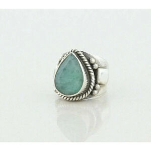 Sterling Silver Green Gemstone Ring Size 6 1/2 Large Chunky Ring