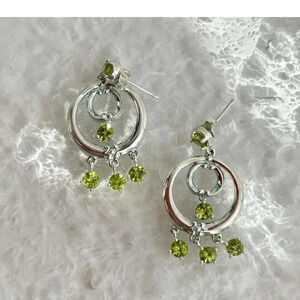 Awesome pair of double hoop green gemstone chandelier style earrings. Push back enclosure. Will arrive with new color matching hypoallergenic backings. All stones perfectly in tact. Appears to have never been worn.