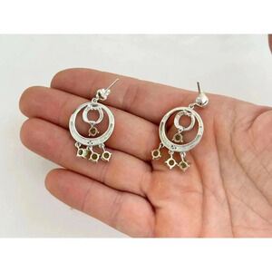 Sterling Silver Green Rhinestone Chandelier Style Hoop Boho Retro Earrings