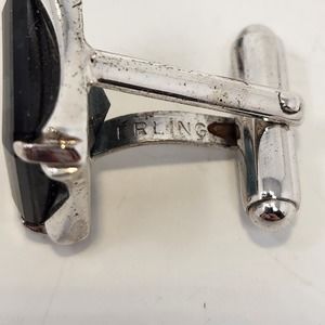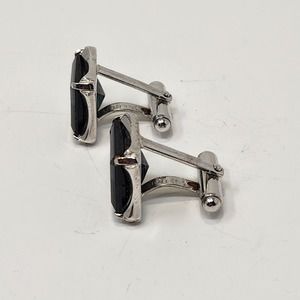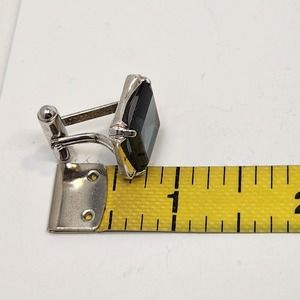 Sterling silver dark green square crystal cufflinks, faceted stone. Signed Sterling Vintage Men's Jewelry Accessory