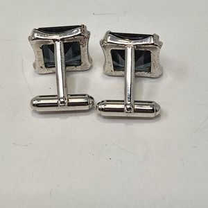 Sterling Silver Green Square Crystal Cufflinks Vintage Mens Accessory Jewelry