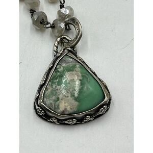 Sterling Silver Green Variscite Pendant Ornate Faceted Moonstone Beaded Necklace