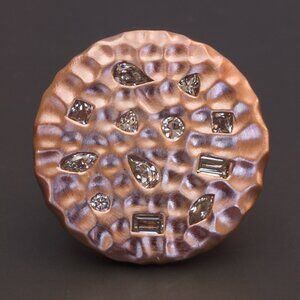 Sterling Silver Hammered Disc Ring with Mixed-Cut CZ — Rose Finish, Size 6