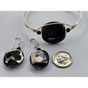 Sterling Silver Handmade Artisan Jewelry Set. Bracelet & Earrings. Size 7
