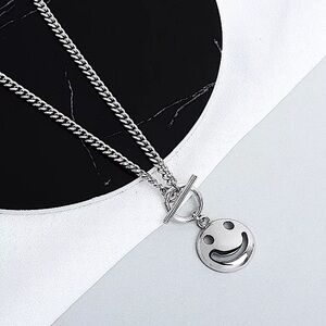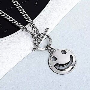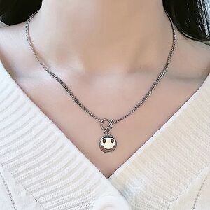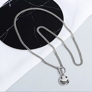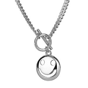Sterling Silver Happy Smiley Face Chain Link Charm Pendant Necklace