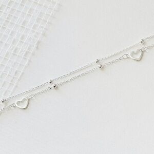 Sterling Silver Heart Bracelet, Cute Dainty Gift Bracelet