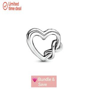 • Style: Sterling silver infinity heart charm with a polished finish and intricate cut-out heart details. The design elegantly wraps a heart shape with an infinity symbol.