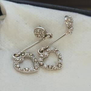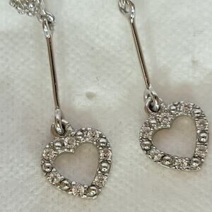 Sterling Silver Heart Earrings 2 Inch CZ Dangle Long Drop Jewelry