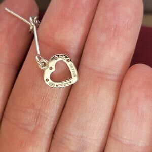 Add graceful sparkle to your look with these 2-inch sterling silver heart dangle earrings. Each earring features a slim silver bar that elegantly suspends a dazzling open heart charm, set with brilliant cubic zirconia stones for subtle shine and movement. The top of each drop is accented with a matching CZ cluster, adding balance and extra shimmer. Crafted from genuine .925 sterling silver and stamped for authenticity, these earrings are lightweight yet eye-catching—ideal for romantic occasions, evening wear, or polished everyday style. Made in Thailand with quality craftsmanship, they offer comfort and secure wear with standard post backings. Whether you're gifting for a birthday, Valentine’s Day, or just treating yourself, these long dangle heart earrings bring a feminine, radiant touch to any jewelry collection. Their length and sparkle make them a standout piece without overwhelming your style.