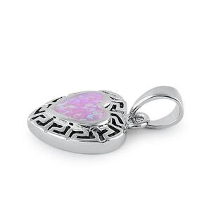 Sterling Silver Heart Greek Pattern Pink Opal Necklace Pendant New