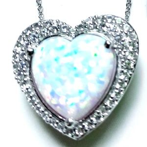 Heart Shaped Lab Created Opal and Sapphire Pendant