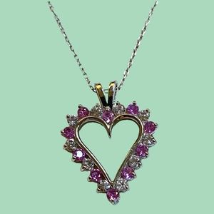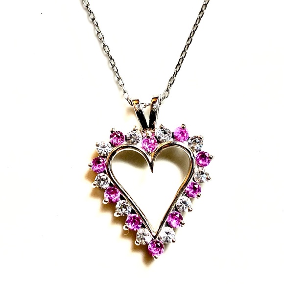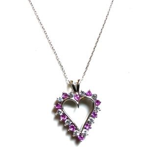 Sterling Silver Heart Shaped Lab Created White & Pink Sapphire Necklace