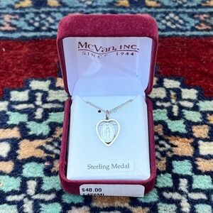 Sterling Silver Heart Shaped Miraculous Mary Religious Medal 18” Chain