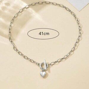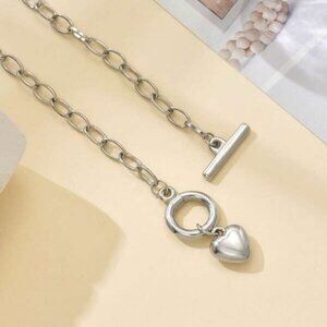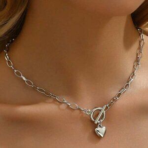 Design: Oval-link chain with front toggle clasp and heart pendant