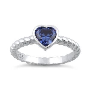 Sterling Silver Heart Blue Spinel CZ Ring New