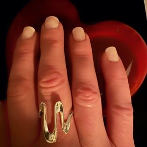 Sterling Silver, (stamped 925), curved "heartbeat" shaped ring, size 5. SIZING MAY BE AVAILABLE FOR THIS RING, PLEASE INQUIRE BEFORE PURCHASE.