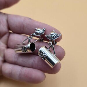 Sterling Silver Heavy HB Large Mug Screw On Earrings A5577