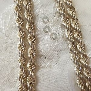 Incredible thick sterling silver rope neck chain stamped 925 Italy and is almost 28 inches long. You could wear it all alone without a pendant. This necklace would look great with any outfit, it could be your signature piece, or you could definitely wear it every day!