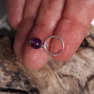 Sterling Silver Helix Cartilage Hoop Earring or Nose Ring Amethyst Dangle created with 18g sterling silver wire, and measuring 9mm in diameter.