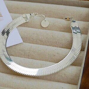 Sterling Silver plated Herringbone bracelet measures a quarter inch width.
