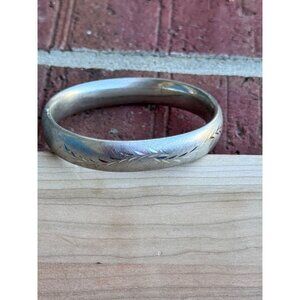 Sterling Silver Hinged Bracelet Engraved Leaf Pattern 7 1/4 Inches Vintage