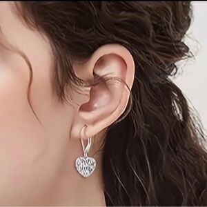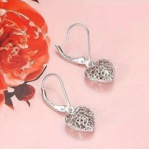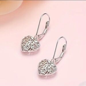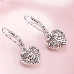 Sterling Silver Hollow Heart Drop Filigree Dangle Earrings - NWT