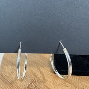 Sterling Silver Hoop Earrings Classic Tubular 1 1/2" 925 Preppy Office Boho