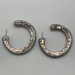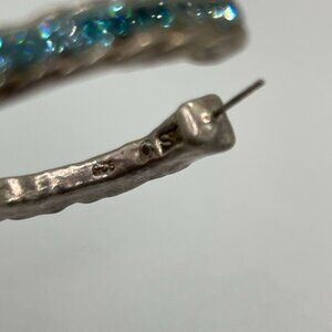 Sterling Silver Hoop Earrings With Blue Crystal Accents 925 Marked