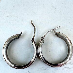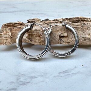 These sterling silver hoop earrings offer understated elegance with their etched detail. Crafted in Italy, they will be a timeless, practical accessory. They are signed 925 Italy.