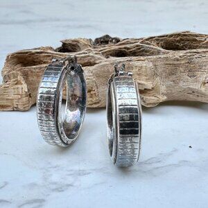 Sterling Silver Hoop Earrings with Etched Detail Made In Italy