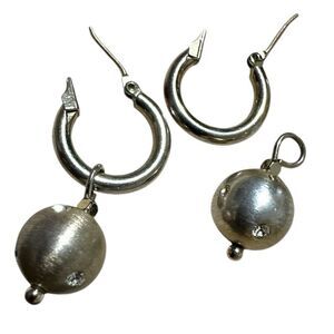 Sterling Silver Hoop Earrings with Heavy Detachable Orb Charms – Elegant & Versatile