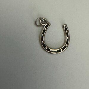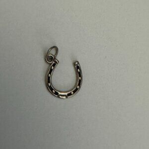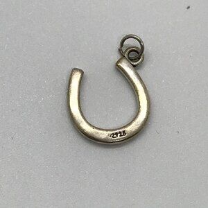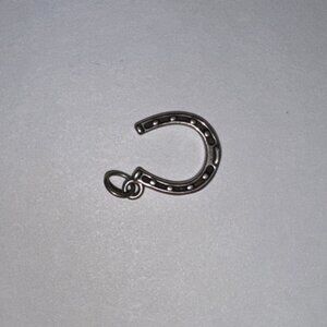 This sterling silver horseshoe charm features an open curved shape and fine details that give it a life-like look. It is a great choice for an earring drop and makes a statement in chain or strung necklace, anklet and bracelet designs.