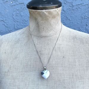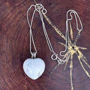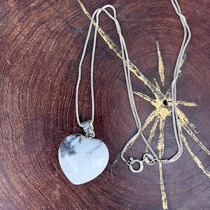 Vintage white and gray howlite heart pendant necklace. Nice minimalist pendant on a Italian 925 chain. No makers mark. All sterling minus gemstone