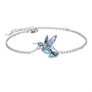Sterling Silver Hummingbird Bracelet Women Abalone Gift Jewelry