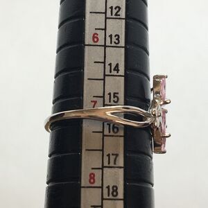 925 Sterling Silver Hummingbird Ring Adjustable Size 7 Pink Green CZ Flower Floral spring or summer, nature and bird themed jewelry. Fits US ring sizes 6 7 & 8 and sizes in-between comfortably. Features a green CZ stone and five pink cubic zirconia gemstones. In very good condition with light wear throughout.