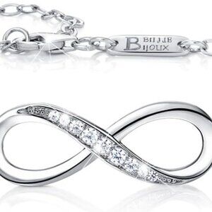 Sterling Silver Infinity Anklet Bracelet with Cubic Zirconia Adjustable