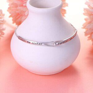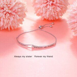 Features: Elegant sterling silver bracelet with a sleek box chain and a charming infinity symbol. Easy to put on and take off, perfect for everyday wear or special occasions. Engraved with heartfelt words: Always my sister, Forever my friend.