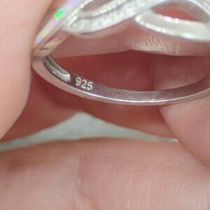 Sterling Silver Infinity Knot Ring W/ Opal Inlay and Cubic Zirconia Size 7.5