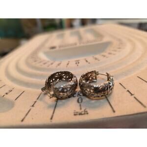 Sterling Silver Intricate Hoop Earrings With Floral Engraving