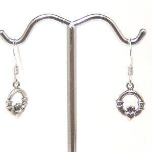 Sterling Silver Irish Claddagh Earrings French Wires Hand Polished