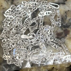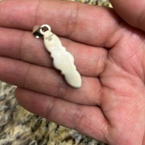 Beautiful sterling silver (.925) chain made in Italy paired with a striking handcrafted Southwestern pendant. The pendant features a mix of inlaid stones including turquoise and spiny oyster in a vertical 3-stone design. Both pieces are stamped 925. Chain and pendant are in excellent condition and make a unique statement piece.