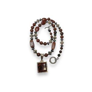Sterling Silver Jasper Necklace With Toggle Clasp 20"