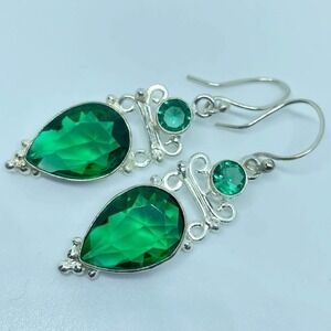 Sterling Silver Dangle Earrings. 2 inches in length. Artisan handcrafted elegant earrings. These are the perfect accessory to a Christmas outfit and are ready for gifting. The fastest green gemstones are gorgeous in the light..