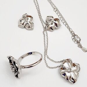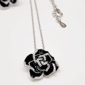 Sterling Silver Jewelry Set Black Rose Earrings, Necklace Ring