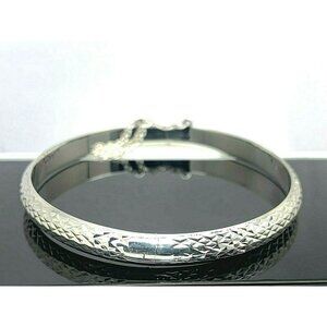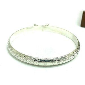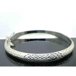 Sterling Silver Jewelry Women's Bangle Bracelet Checkered 6.7mm Wide 7''
