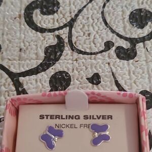 Sterling Silver Kids Earrings - Purple and Rainbow