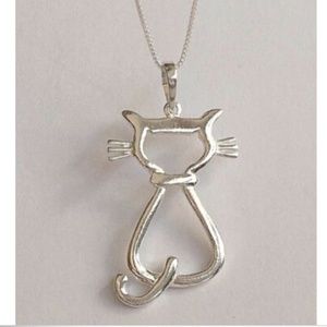 Sterling Silver Kitty Cat Lady Necklace 18" 925