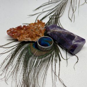 Sterling Silver Knot Band in good condition. Features an all around knot design. Size is approx. 10. Shows signs of wear.