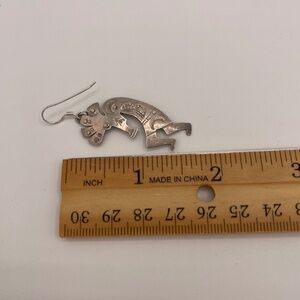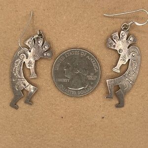 Sterling Silver Kokopelli Earrings Dangle 925 Dancer Feathers & Flute