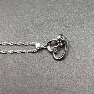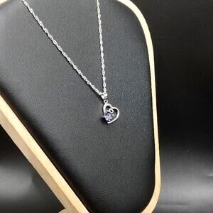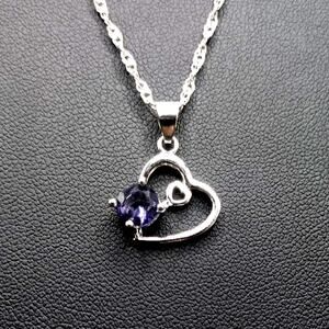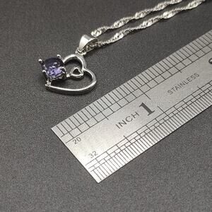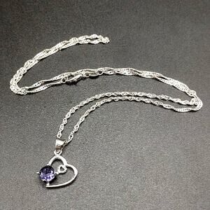 Sterling Silver & Lab Amethyst Double Hearts Necklace Women's Fashion Gift NEW!